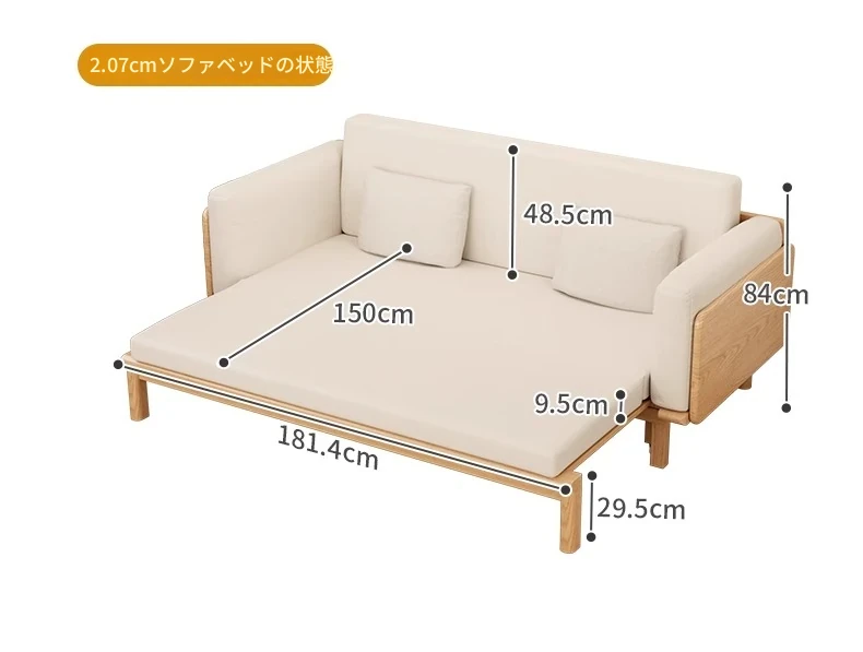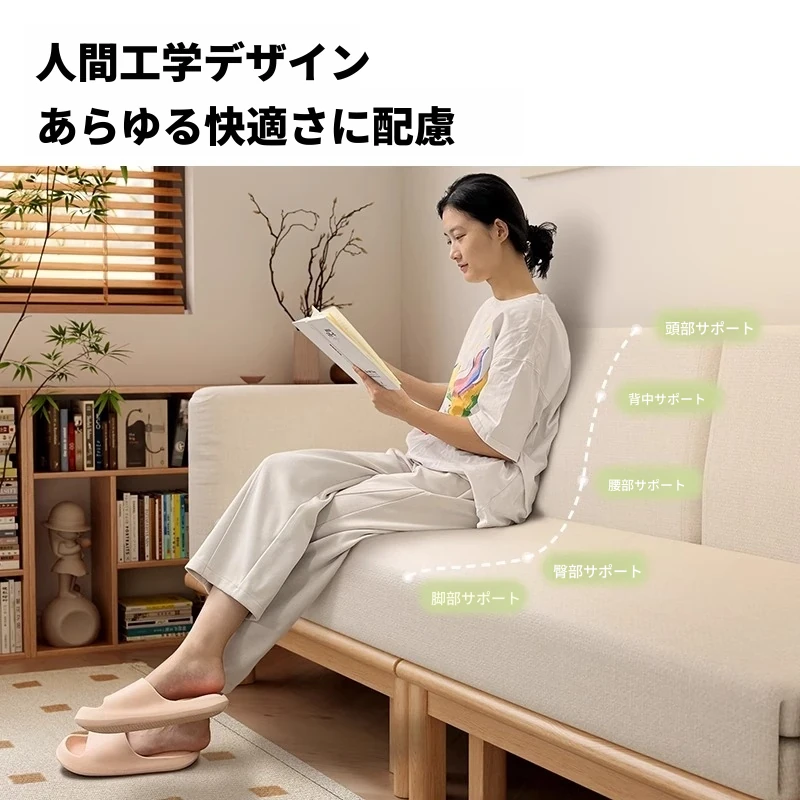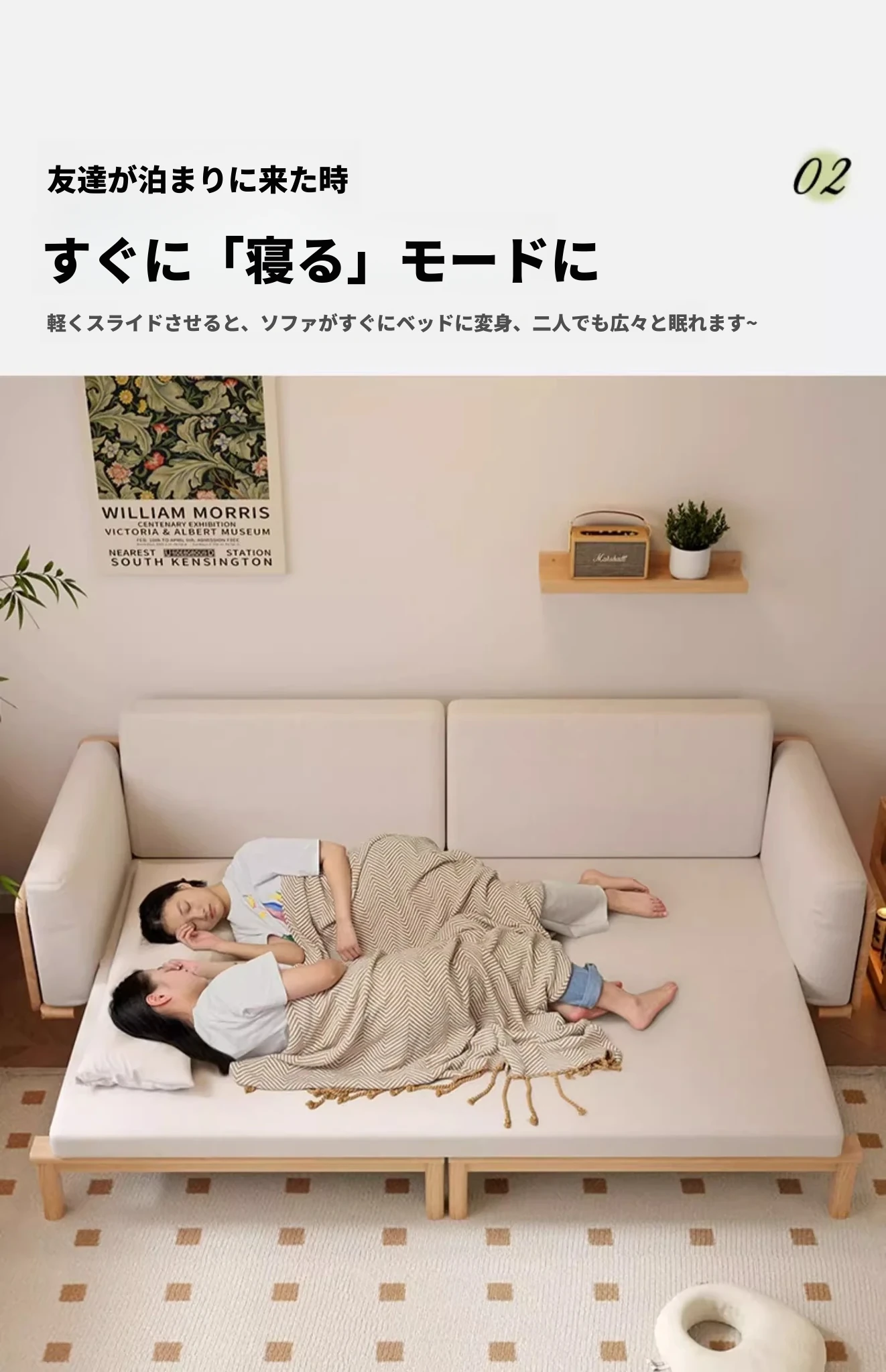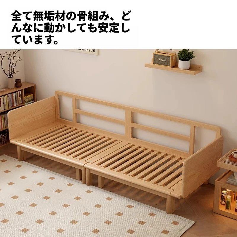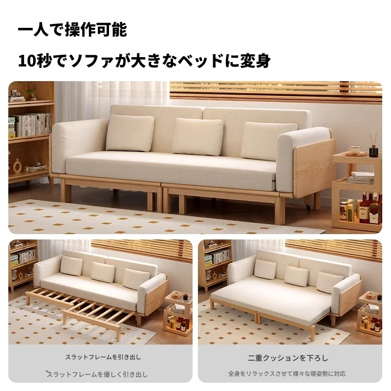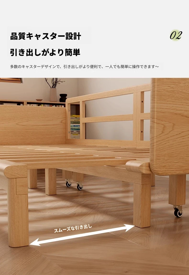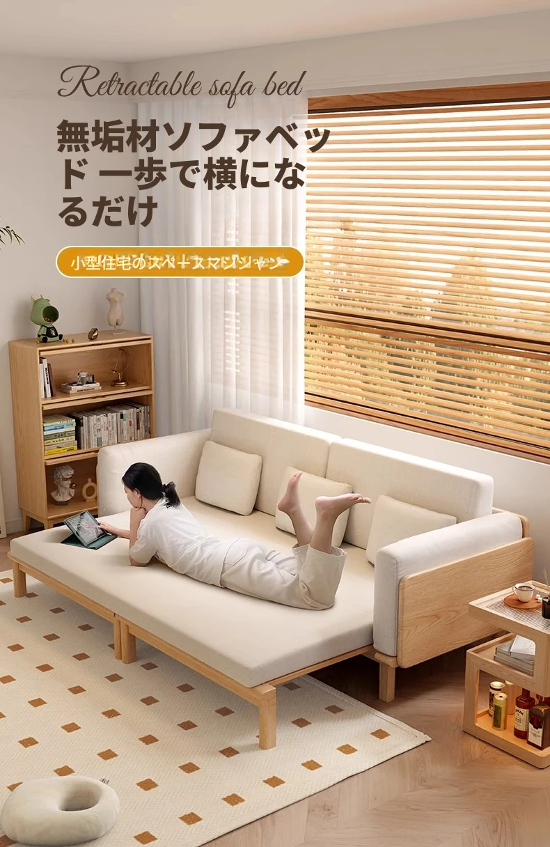 佐識の実木ソファベッド - 折りたたみ式で小型スペースに最適!多機能で伸縮自在、リビングにぴったりの引き出し式ソファ。快適な座り心地とおしゃれなデザインで、狭いお部屋でも大活躍!