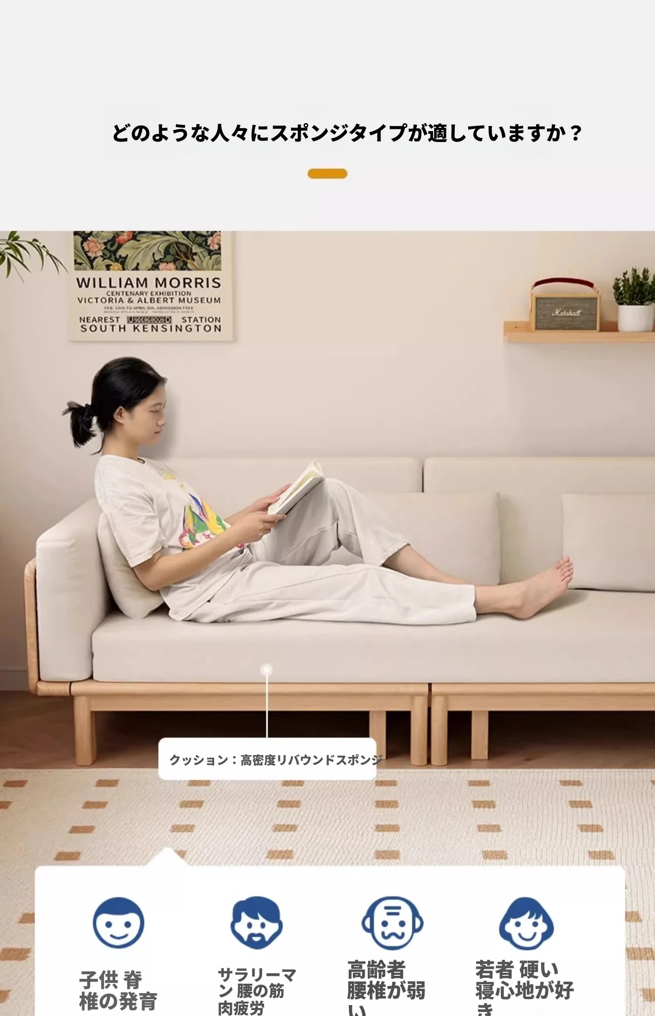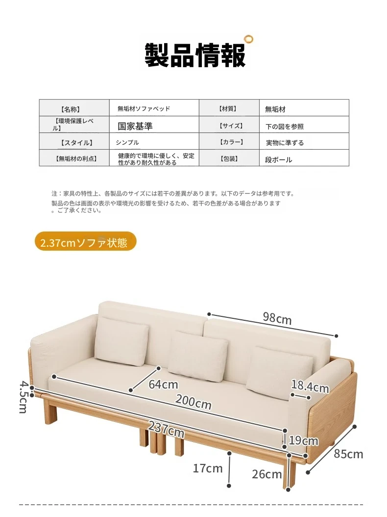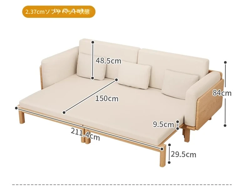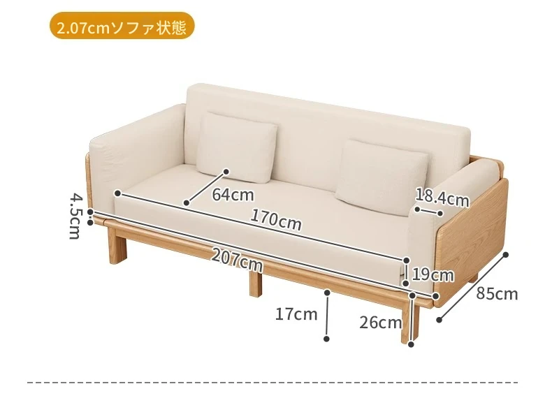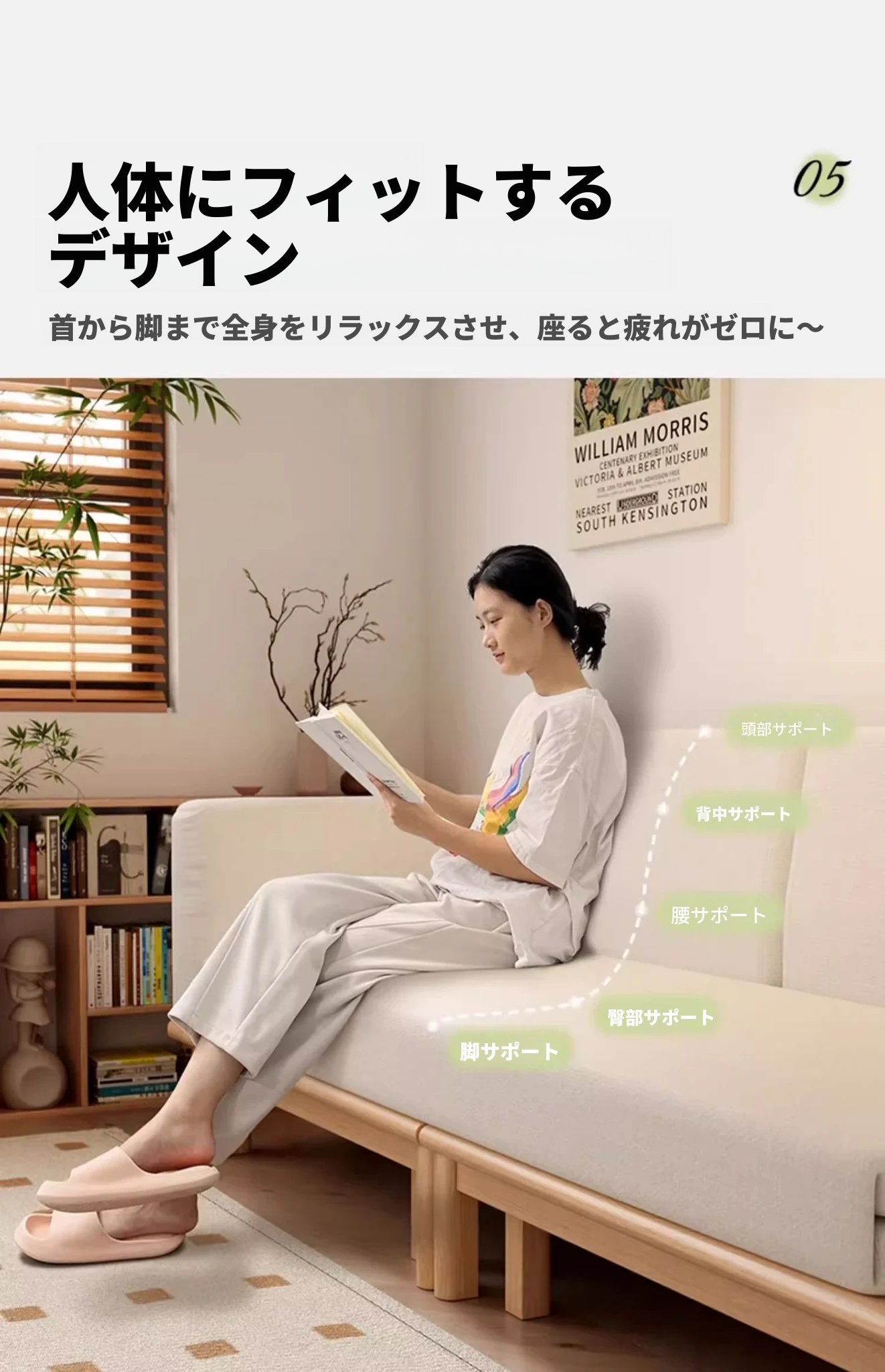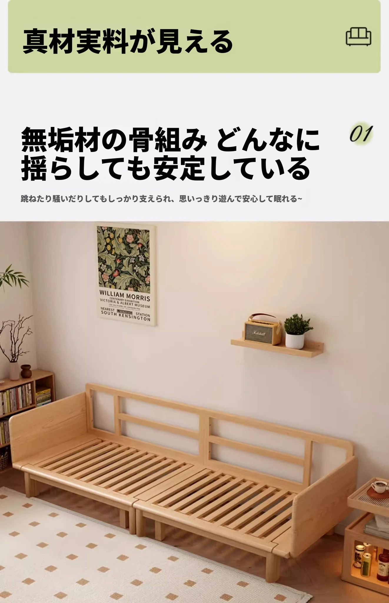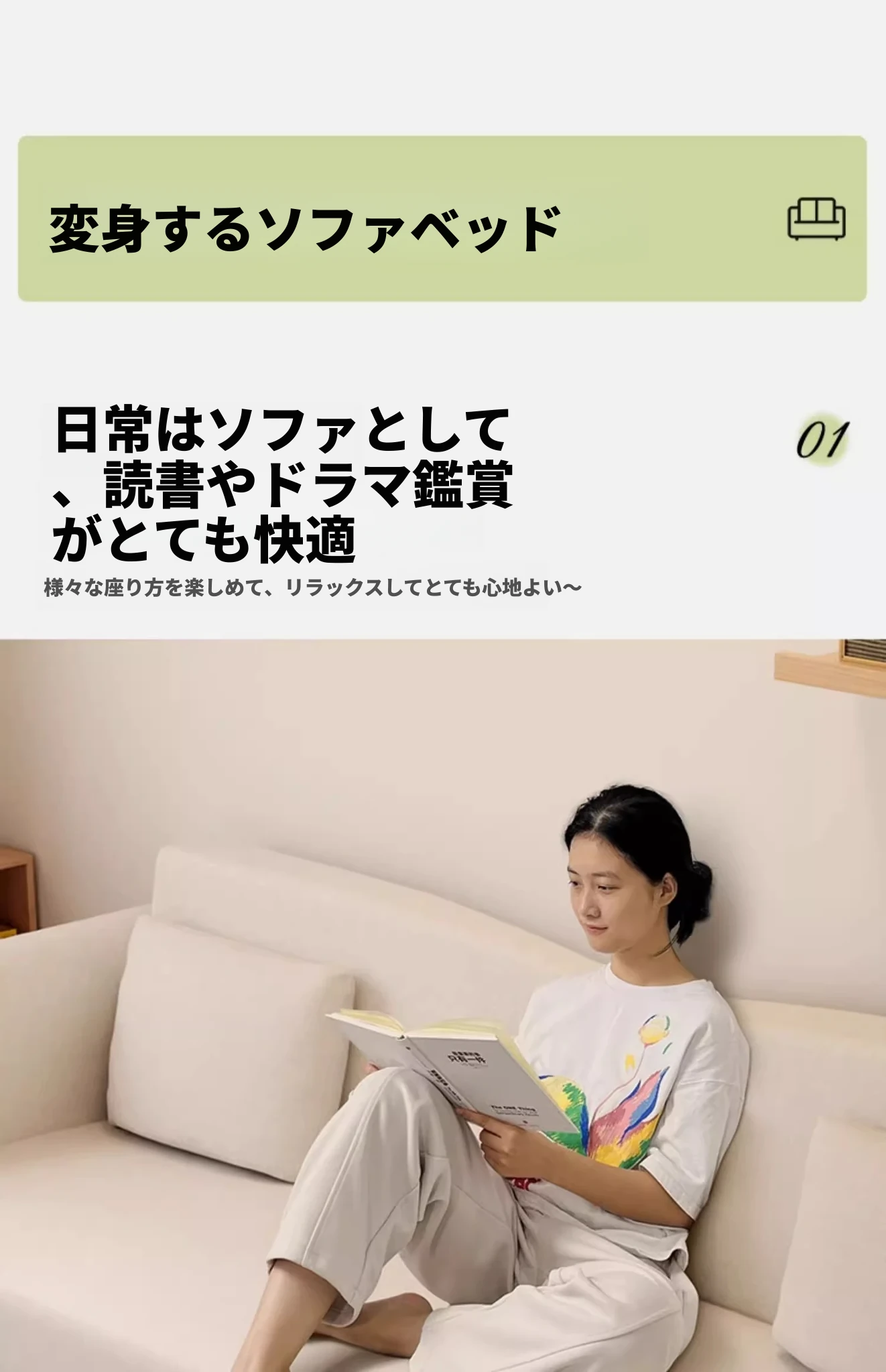 佐識の実木ソファベッド - 折りたたみ式で小型スペースに最適!多機能で伸縮自在、リビングにぴったりの引き出し式ソファ。快適な座り心地とおしゃれなデザインで、狭いお部屋でも大活躍!