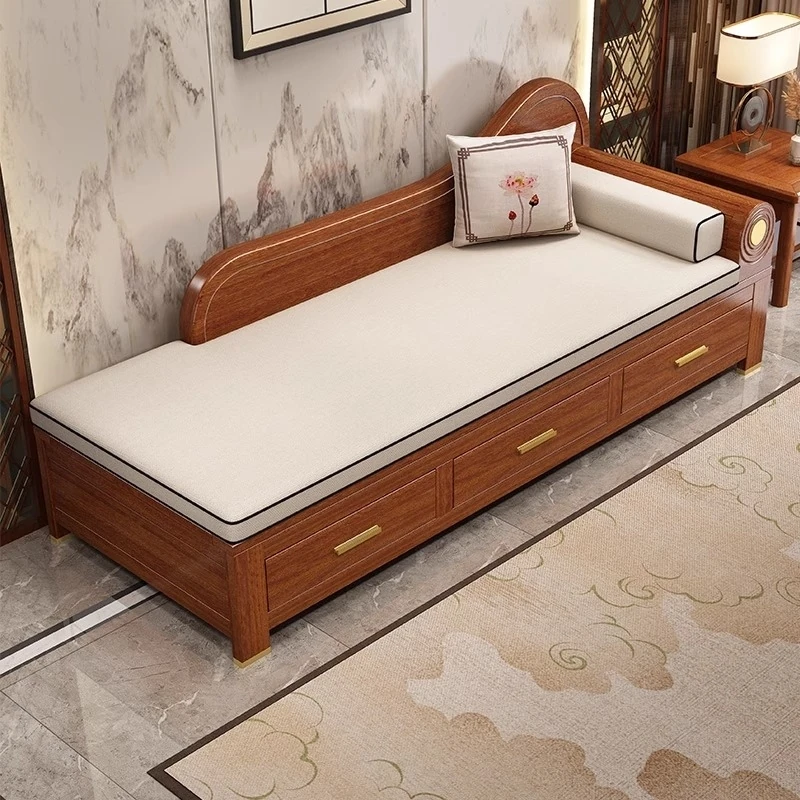 オヤイチ家のリビング禅スタイルくるみの木バルコニーリラックスチェア 新中式美人ソファ 小型収納ロハンベッドで快適な空間を演出!