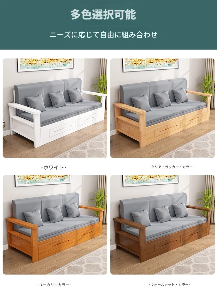 [香港送料無料] 2025年新作!高級感あふれる無垢材ソファベッド - 折りたたみ式で小型リビングにも最適!スライド機能付きで便利さ抜群!