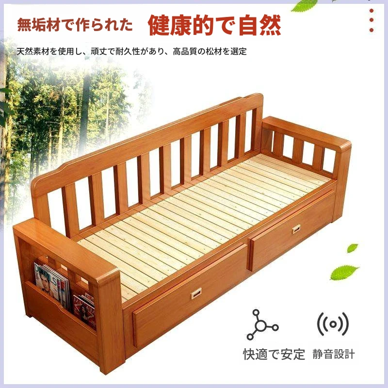 収納機能付き!伸縮可能な実木製ソファベッド - 小型リビングに最適な多機能折りたたみベッドで、快適な座り心地と寝心地を両立!おしゃれで実用的な空間を演出します。