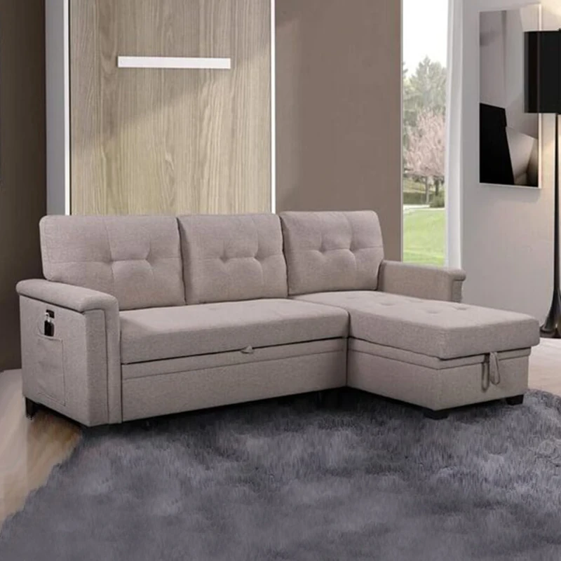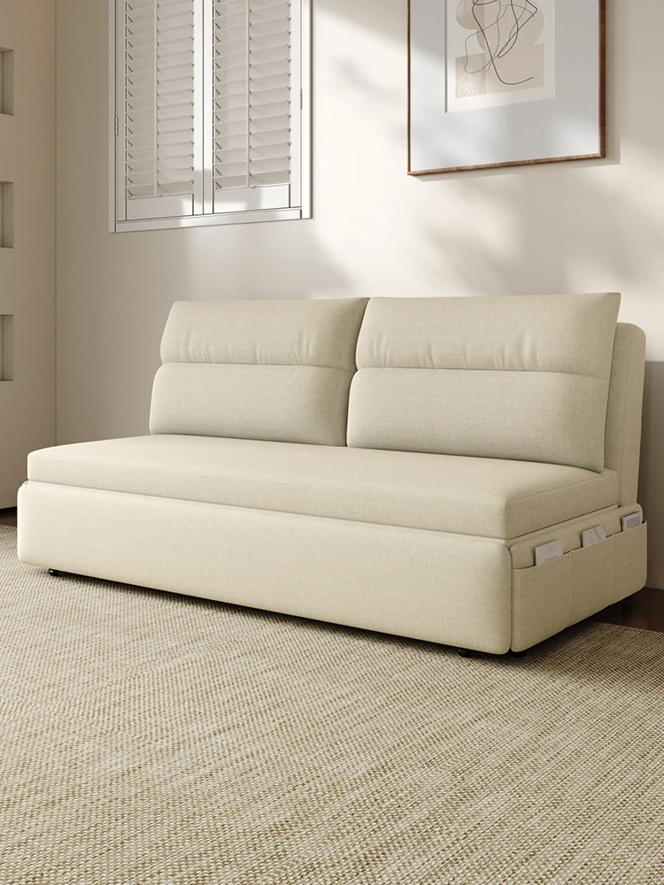 折りたたみ式ソファベッド|クリームカラーの新デザイン|多機能小型リビングルーム用|ダブルサイズの引き出し式ベッド|スペースを有効活用!快適な座り心地と眠りを提供します!