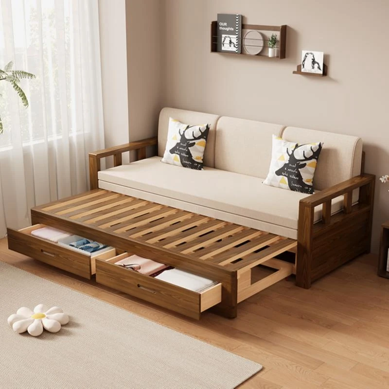 折りたたみ式の無垢材マルチファンクションベッド - リビング、書斎、バルコニーに最適!スペースを有効活用する一人用・二人用ソファベッド。スタイリッシュで機能的、狭いお部屋にもぴったり!