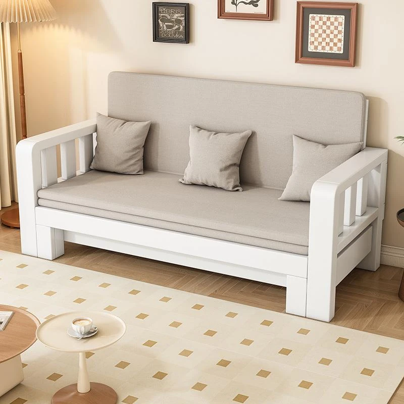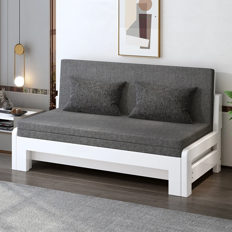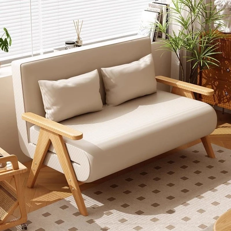 全実木製ソファベッド - 折りたたみ可能な2WAYデザイン!小型リビングにぴったりの1.5mダブルソファと1.2mシングルスライドベッド。コンパクトでスタイリッシュ、空間を有効活用!