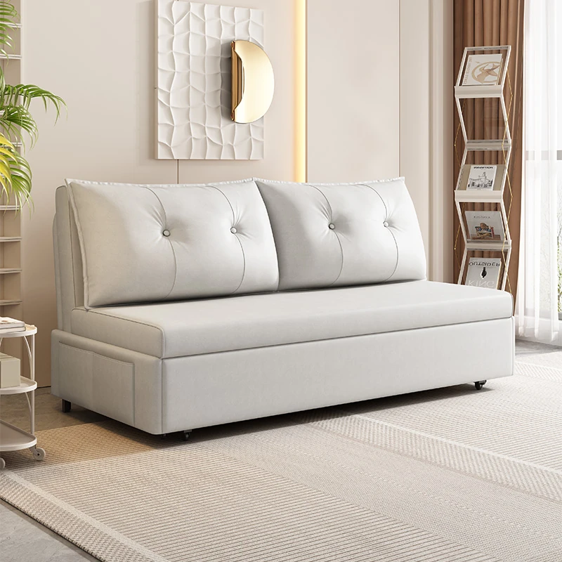 フランス風クリームカラーの猫抓皮折りたたみソファベッド - 多機能・コンパクトデザインで小型住居に最適!プッシュ&プル一体型で新登場!快適なくつろぎ空間をお楽しみください。