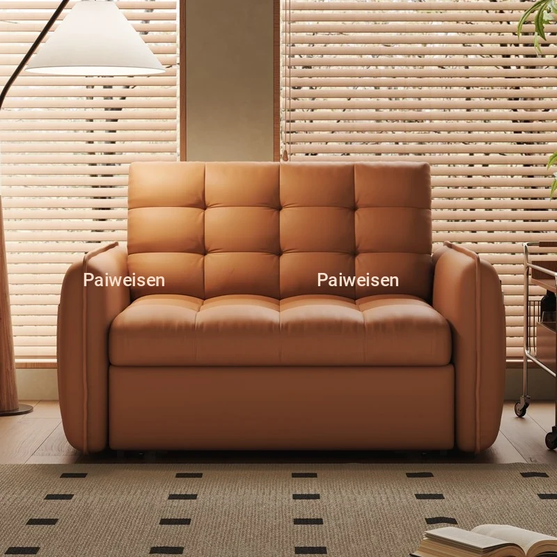 Compact Multifunctional Leather Sofa Bed - Foldable Single Sofa for Small Spaces, Ideal for Living Rooms and Balconies, Vintage Style Pull-Out Chair for Relaxation