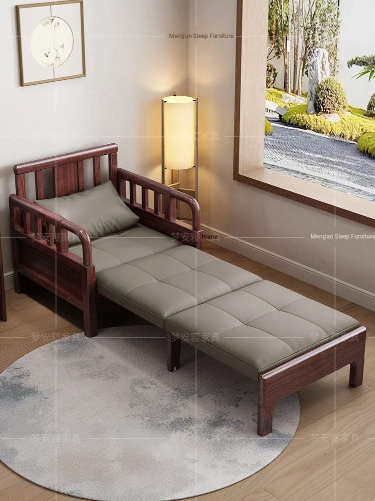 Multifunctional Chinese Style Solid Wood Sofa Bed - Space-Saving, Foldable Design for Living Room, Study, Balcony, and Bedroom - Perfect for Extra Sleeping Space!