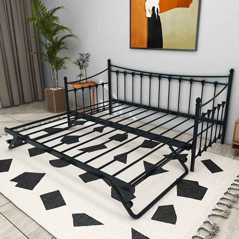 European-Style Iron Sofa Bed with Pull-Out Trundle - Versatile Bunk Bed, Movable Care Bed, and Modular King Size Bed (1.8m) - Perfect for Space-Saving and Comfortable Living