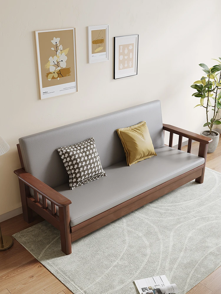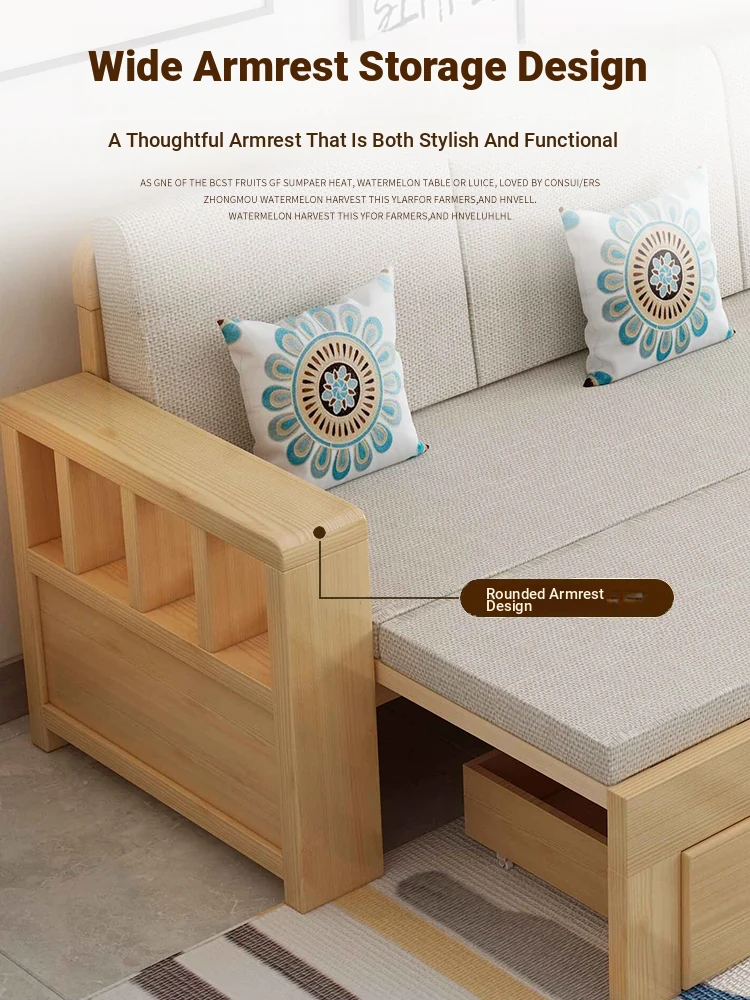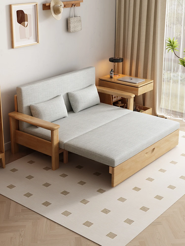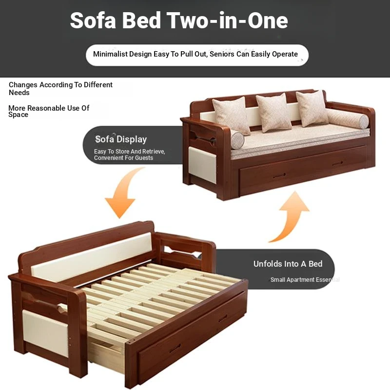 Multipurpose Solid Wood Sofa Bed - Foldable, Space-Saving Design for Small Living Rooms, Stylish Pull-Out Sleeper Sofa for Seating and Relaxation
