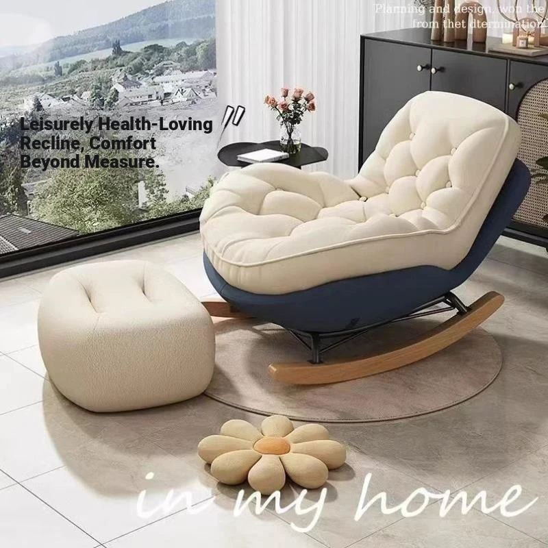 Japanese-style Single Rocking Chair - Trendy White Sofa for Balcony, Living Room, and Bedroom - Northern-style Relaxation Lounger for Ultimate Comfort