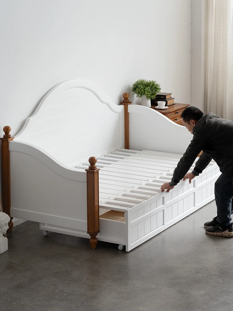 Solid Wood Pull-Out Expandable Bed - American Style Children's Sofa Bed in Red Oak with Storage Features and Multi-Functionality for Space-Saving Solutions
