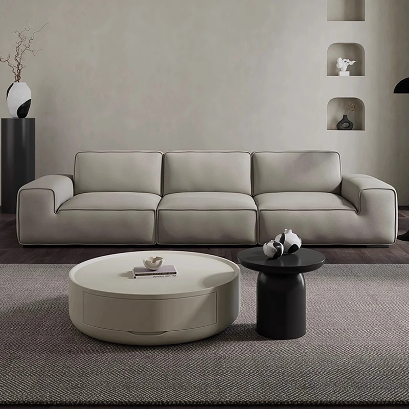 タルマン 豆腐ブロックソファ 小型リビング向け イタリアンミニマリズム 高背もたれ ストレート3人掛け 本革ソファで快適なひとときを!