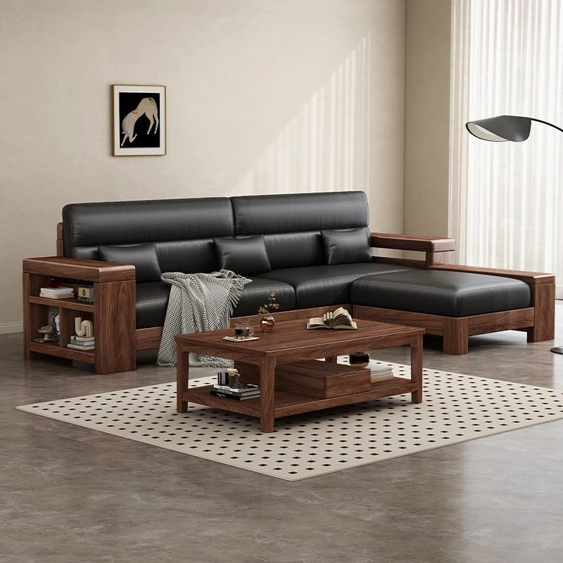 今遇実木製皮ソファセット|新中式デザインのモダンリビング向けシンプルで洗練された家具。心地よい空間を演出し、家族の団らんをより特別に!